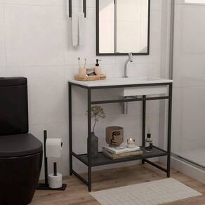 Gabinete Banheiro Ferro Iron Black 80x45cm Branco Fosco Gabinete Banheiro Ferro Iron Black 80x45 cm Branco Fosco - Gabinete de Ferro com Tampo e Cuba em Pedra Ardósia Gold