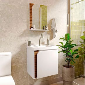 Gabinete Banheiro Lirio com 1 Porta Espelheira e Cuba - Branco