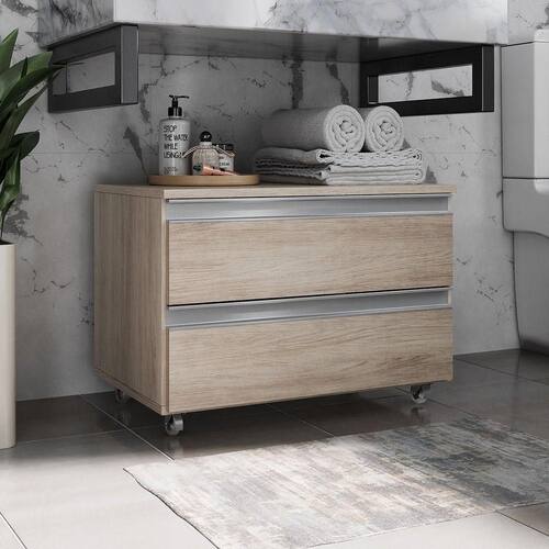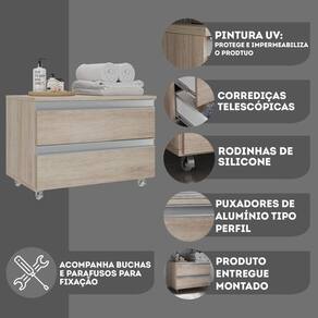 Gabinete Banheiro Rodinhas Joia 60cm 02 Gavetas Madeirado Inteiro