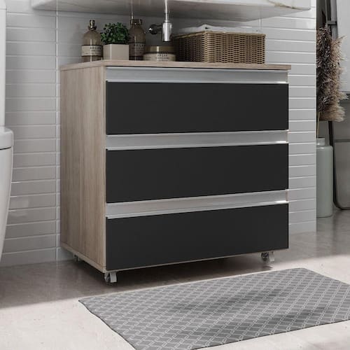 Gabinete Banheiro Rodinhas Joia 60cm 03 Gavetas Madeirado Preto
