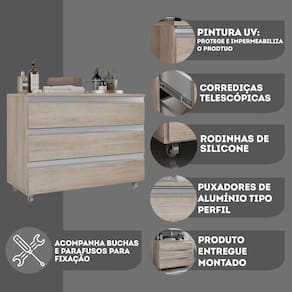 GABINETE ARMÁRIO BANHEIRO 03 GAVETAS JOIA - 80CM