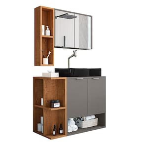 Com um espelho amplo e prateleiras práticas, ela oferece o espaço ideal para organizar seus produtos de beleza e higiene pessoal, mantendo tudo ao seu alcance.