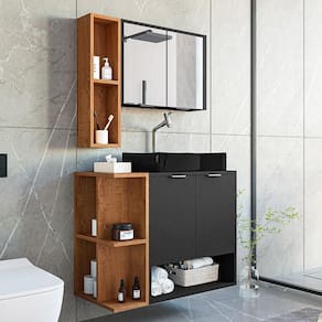 Com um espelho amplo e prateleiras práticas, ela oferece o espaço ideal para organizar seus produtos de beleza e higiene pessoal, mantendo tudo ao seu alcance.