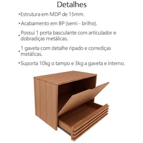 Gabinete Com Cuba Para Banheiro BN3630x13, ideal para inovar o seu banheiro com toque luxuoso e ao mesmo tempo refinado. Estrutura em MDP de 15mm, proporcionando maior durabilidade e resistência a peça, contando com acabamento em pintura UV (semi - brilho). Composto por 1 porta basculante com articulador e dobradiças metálicas e 1 gaveta em detalhe ripado com corrediças metálicas. Suportando 10kg o tampo e 3kg a gaveta e interno. Cuba produzida em mármore sintético, contando com acabamento em brilho polido. Suportando até 4 litros e 10kg. Já conta com furação para instalação de torneira (torneira não inclusa). Perfeito para deixar seu ambiente produtivo, proporcionando uma ambientação elegante e moderna. Estes móveis chegarão na sua casa separados em 2 volumes.