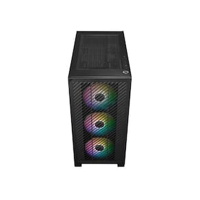 O elite 301 possui uma grande grade de entrada de ar e três ventiladores argb de 120 mm para garantir um sistema eficiente e com desempenho estável. O revestimento totalmente preto e a cobertura para a fonte de alimentação permitem montagens limpas, que são tanto visualmente atraentes quanto funcionais.