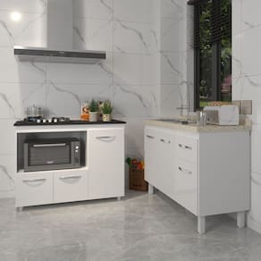 Transforme sua cozinha com o Kit Balcão para Pia 118 cm Aline e Balcão para Cooktop 4 Bocas Alana!