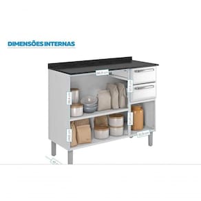 Ampla Organização Interna: Conta com 3 portas e 2 gavetas espaçosas, além de prateleiras internas, oferecendo um excelente espaço para organizar seus utensílios, panelas e mantimentos.