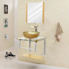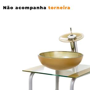 - Bancada de vidro - Cuba de vidro - Prateleira da bancada - Espelho - Válvula - Estrutura em metal e porta toalha - Kit parafusos completo para instalação
