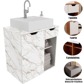 • Material: Gabinete: Estrutura em MDP / Cuba: Mármore sintético