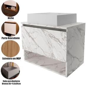 • Material: Gabinete: Estrutura em MDP / Cuba: Mármore sintético