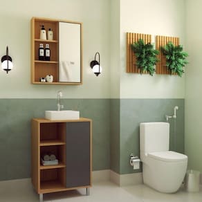 Altura do Conjunto: 148 cm Ambiente: null Ambiente Principal: Banheiro Cor: Mel/Grafite Informação Complementar: 1x Armário de Banheiro com Espelho 1 Porta de Correr 2 Preteleiras Julia Mel/Grafite Largura: 60 Altura: 65 Peso: 9.4 Profundidade: 14 Necessita Montagem: Sim