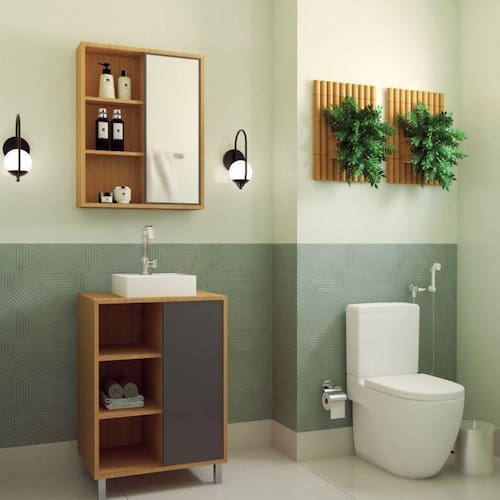 A espelheira e balcão com portas de correr para banheiro CJ7250 possui balcão com pés, 1 porta de correr e 3 prateleiras que vão dispôr ao móvel um ótimo espaço interno e organização. A espelheira possui também 1 porta de correr, com 2 prateleiras e espelho. As portas de correr facilitam o acesso e visibilidade dos seus utensílios pessoais. Produzido em MDP 15mm. Acompanha cuba branca.
