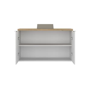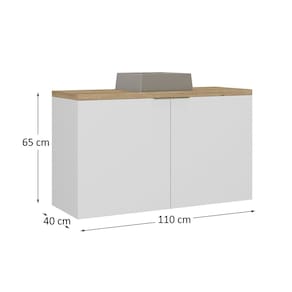 - Cor: Branco – neutro e fácil de combinar – Tampo em Carvalho para dar um leve detalhe
