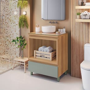 Gabinete para Banheiro 70 cm com Cx Organiza Rainha 70 cm. Feito em 100 MDF, combina durabilidade com um design moderno que otimiza o espaço e a organização. Ideal para quem deseja um ambiente elegante e funcional.