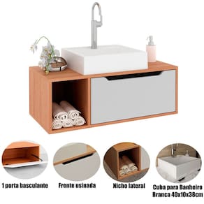 • Material: Gabinete: Estrutura em MDP / Cuba: Mármore sintético