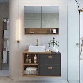 O conjunto CJ8240 da Faema possui um balcão com 2 gavetas, dois nichos e puxadores em fomato de concha. Já a espelheira possui 2 portas com espelho aplicado e uma prateleira interna. Na parte inferior da espelheira possui um nicho onde você pode colocar os seus pertences mais utilizados diariamente ou até mesmo uma linda decoração! Venha conferir! Acabamento da Cuba: Liso Acabamento da Gaveta: Finish Foil Acabamento da Porta: Finish Foil Acabamento da Prateleira: Finish Foil Acompanha Cuba: Sim Acompanha Gaveteiro: Não Acompanha Manual de Instalação: Sim Acompanha Parafusos Para Fixação Na Parede: Sim Acompanha Tampo: Sim Acompanha Válvula: Não Altura do Espelho: 49 cm Ambiente Principal: Banheiro codigo_ean: 7900288206664 Complexidade da Montagem: Média: pode ser montado por mais de uma pessoa e/ou necessite de maior conhecimento para montagem Cor: Mel / Grafite Cor da Cuba: Branco Cor da Gaveta: Preto Cor do Produto: Mel / Grafite Cor Flex: Não Cor Interna: Mel Escala de Brilho: Fosco Escala de Brilho da Gaveta: Fosco Escala de Brilho da Porta: Fosco Escala de Brilho da Prateleira: Fosco Espessura do Espelho: 3 mm Formato da Cuba: Retangular Formato do Espelho: Retangular Formato Espelheira: Retangular Furação para Cuba e Torneira: Não Gaveta com Chave: Não Itens Inclusos: 1 Gabinete, 1 Espelheira, 1 Cuba, Kit Ferragens e Manual de Montagem Largura do Espelho: 39 cm Linha ou Coleção: Helena Manual de Montagem e Instalação: https://product-hub-prd.madeiramadeira.com.br/127466493/documents/f8e1655d-7f36-43d1-8d18-aeda1fcee7573119446522517544224531908.pdf Marca: FAEMA Material da Cuba: Mármore Sintético Material da Gaveta: MDP Material da Porta: MDP Material da Prateleira: MDP Material do Puxador da Gaveta: ABS Material do Tampo: MDP Material Principal: MDP Medida da Cuba (C x L x P): 9x32x30 Medida da Espelheira (A x L x P): 66x80x14 Medida do Gabinete (A x L x P): 50x80x40 Montagem Flex: Não Necessita Montagem: Sim Origem do Produto: Nacional Peso: 32,5 kg Peso Máximo por Gaveta: 5 kg Peso Máximo por Prateleira: 5 kg Possui Espelheira: Sim Possui Gabinete: Sim Possui iluminação: Não Possui Pés: Suspenso Possui Porta de Vidro: Não Possui Recorte No Tampo Para Cuba: Não Possui Recorte No Tampo Para Misturador: Não Possui Rodízio: Não Possui Sifão: Não Possui Tampo: Sim Possui Tampo de Vidro: Não Produto Montado: Sim Quantidade de Espelhos: 02 Espelhos com Tamanhos Iguais Recomendações de Uso, Manutenção e Limpeza: Para a limpeza do móvel utilizar pano levemente umedecido com água Sistema de Montagem: Parafusos e cavilhas Suporta Até (kg): 40 kg Suporte para Toalheiro: Não Tamanho do Espelho (A x L): 49x39 Tamanho do Gabinete: Médio: de 60cm a 80cm de largura Tipo de Corrediça da Gaveta: Metálica Simples Tipo de Cuba: Sobrepor Tipo de Dobradiça/Corrediça da Porta: Metálica Tipo de Fixação do Espelho: Silicone Tipo de Gabinete: Gabinete Suspenso Tipo de Gaveta: Externa Tipo de Porta: Bater Tipo de Puxador da Gaveta: Externo Tipo de Puxador da Porta: Não Contém Marca: Não Informado