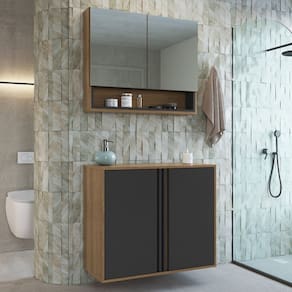 O Conjunto para banheiro CJ8040 é essencial para manter a organização e deixar seu espaço mais estiloso. O balcão possui duas portas e uma prateleira interna, sendo bem espaçosos e possuindo um design clean. Já a espelheira é ideal para organizar itens de higiene e beleza em seu interior. Além de funcional, o conjunto contribui para complementar a decoração, economizando espaço em banheiros menores e mantendo os itens organizados e acessíveis. Não acompanha cuba. Acabamento da Porta: Finish Foil Acabamento da Prateleira: Finish Foil Acompanha Cuba: Não Acompanha Gaveteiro: Não Acompanha Manual de Instalação: Sim Acompanha Parafusos Para Fixação Na Parede: Sim Acompanha Tampo: Sim Altura do Espelho: 49 cm Ambiente Principal: Banheiro codigo_ean: 7900288232304 Complexidade da Montagem: Média: pode ser montado por mais de uma pessoa e/ou necessite de maior conhecimento para montagem Cor: Mel/Grafite Cor da Porta: Preto Cor do Produto: Mel/Grafite Cor Flex: Não Cor Interna: Mel Escala de Brilho: Fosco Escala de Brilho da Porta: Fosco Escala de Brilho da Prateleira: Fosco Espessura do Espelho: 3 mm Formato do Espelho: Retangular Formato Espelheira: Retangular Furação para Cuba e Torneira: Não Itens Inclusos: 1 Espelheira, 1 Gabinete. Kit Ferragens e Manual de Montagem Largura do Espelho: 39 cm Linha ou Coleção: Antônia Manual de Montagem e Instalação: https://product-hub-prd.madeiramadeira.com.br/670659140/documents/ccd681fd-e59a-4385-b686-6b318a75898d3171562522517566458629345.pdf Marca: FAEMA Material da Porta: MDP Material da Prateleira: MDP Material do Tampo: MDP Material Principal: MDP Medida da Espelheira (A x L x P): 66x80x14 Medida do Gabinete (A x L x P): 67,5x80x37 Montagem Flex: Não Necessita Montagem: Sim Origem do Produto: Nacional Peso: 32,5 kg Peso Máximo por Prateleira: 5 kg Possui Espelheira: Sim Possui Gabinete: Sim Possui Gavetas: Não Possui iluminação: Não Possui Nichos: Sim Possui Pés: Suspenso Possui Porta de Vidro: Não Possui Recorte No Tampo Para Cuba: Não Possui Recorte No Tampo Para Misturador: Não Possui Rodízio: Não Possui Sifão: Não Possui Tampo: Sim Possui Tampo de Vidro: Não Produto Montado: Sim Quantidade de Espelhos: 02 Espelhos com Tamanhos Iguais Recomendações de Uso, Manutenção e Limpeza: Para a limpeza do móvel utilizar pano levemente umedecido com água Sistema de Montagem: Parafusos, cavilhas e minifix Suporta Até (kg): 45 kg Suporte para Toalheiro: Não Tamanho do Espelho (A x L): 49x39 Tamanho do Gabinete: Médio: de 60cm a 80cm de largura Tipo de Dobradiça/Corrediça da Porta: Metálica Tipo de Fixação do Espelho: Silicone Tipo de Gabinete: Gabinete Suspenso Tipo de Porta: Bater Tipo de Puxador da Porta: Cava Marca: Não Informado