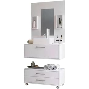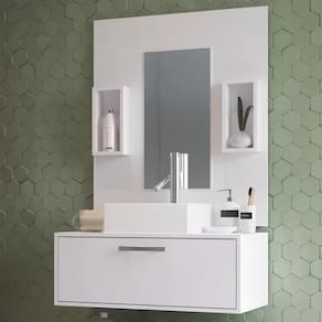 Acompanha balcão inferior, balcão superior, painel e nichos.