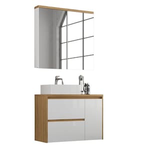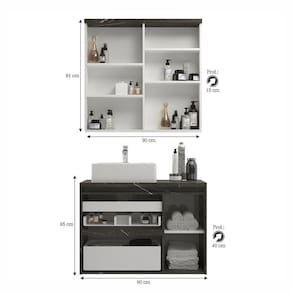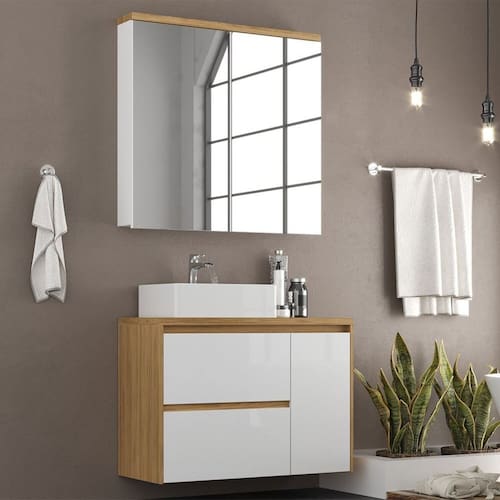 Conjunto de Banheiro 90cm com Gabinete, Cuba e Armário