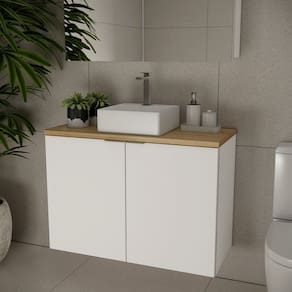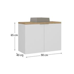- Cor: Branco – neutro e fácil de combinar – Tampo em Carvalho para dar um leve detalhe