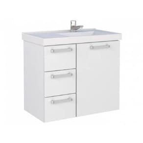 CARACTERÍSTICAS: Dobradiças Com Amortecimento; Lavatório Em Mármore Sintético Com Bordas Sobrepostas; Puxadores Em Alumínio; Gavetas Que Não Ressecam.