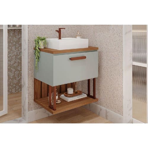 Gabinete de Banheiro Balcão Duna 1 Porta c/Cuba 60cm Pistache/Freijo - MGM - Blush