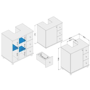 Gabinete de Banheiro c/ Pés 3386 s/ Cuba c/ 1 Porta e 3 Gavetas 60cm Branco - Politorno