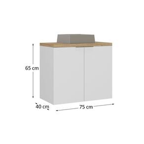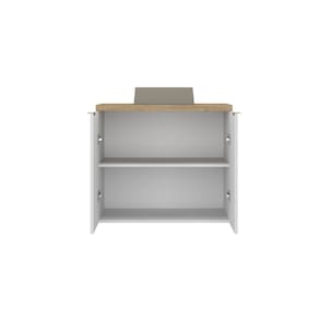 - Cor: Branco – neutro e fácil de combinar – Tampo em Carvalho para dar um leve detalhe
