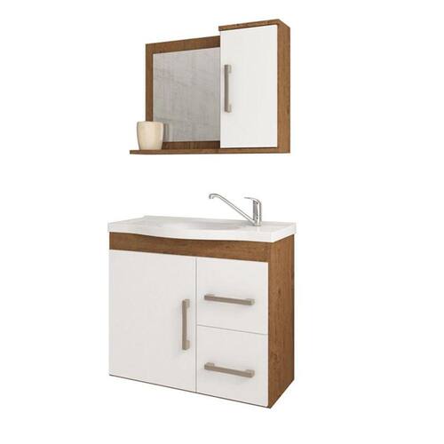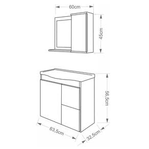 Produto: Gabinete de Banheiro com Cuba e Espelheira Vix 65cm Amendoa/Branco - MGM Cor: Amendoa/Branco Fabricante: MGM Peso: 20,5 Altura (cm): 56,5 Largura (cm): 63,5 Profundidade (cm): 32,5 Linha: Soft Marca: MGM Móveis Modelo: Vix Estrutura: 100 % MDF Acabamento: Pintura UV Garantia: 3 Necessita Montagem ?: Não Quantidade de Portas: 2 (1 na espelheira) Quantidade de Gavetas Externas: 2 Quantidade de Gavetas Internas: N/T Quantidade de Prateleiras: 2 na espelheira Possui Toalheiro ?: N/T porta com Pistão a Gás: Não Quantidade de Puxadores: 4 Material do Puxador: Polipropileno Corrediças: Telescópicas Dobradiças: Metálicas Possui Vidro: Não Acompanha Pia: Sim Material da Pia: Mármore Sintético Dimensões da Pia: 9,7 x 63,1 x 32,5