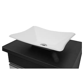 Gabinete - Medida: 600 x 450 x 415mm - Puxadores com perfil em aluminio - Cuba de apoio em mármore sintético na cor branca - Tampo em MDF com furo para torneira - Corrediças telescópica (250mm) - MDF 15mm pintura UV - Bordas em PVC - Gavetas revestidas em PET, que garantem um perfeito acabamento - Dobradiça com pistão com ângulo de abertura de 110º