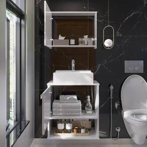 O Gabinete de Banheiro Lotus não é apenas um móvel, é uma solução completa para o seu banheiro. Com uma forma quadrada e um único furo de 4cm para a torneira e válvula, a cuba se adapta perfeitamente a qualquer estilo de decoração. A combinação de cores neutras e acabamentos de qualidade garantem que este produto se destaque, tornando-se um verdadeiro ponto focal no seu espaço.