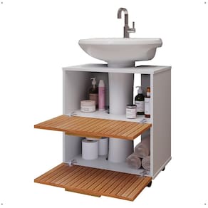 Gabinete de Banheiro Prime Armário Para Pia De Coluna Branco Ripado O Armário de Banheiro Coluna Prime combina funcionalidade e estilo. Suas portas basculantes garantem fácil acesso aos seus itens, enquanto as rodinhas facilitam a movimentação para limpeza. Os puxadores em madeira adicionam um toque de elegância ao seu ambiente. Organize seu banheiro com praticidade e sofisticação.