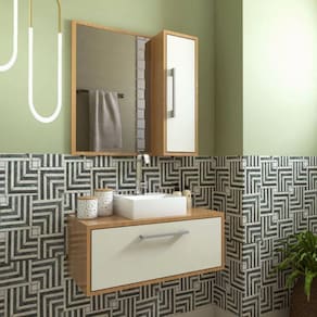 1x Gabinete de Banheiro Suspenso 80cm 1 Porta Basculante sem Cuba Alice Mel/Arenas Largura: 80 Altura: 30 Peso: 11,3 kg Profundidade: 40 Necessita Montagem: Sim