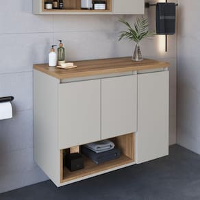 O balcão com 3 portas BL9220 da Faema possui amplo espaço interno e conta ainda com um nicho para colocar seus utensílios ou decoração. O seu tampo é produzido em MDP de 25mm, dando uma maior durabilidade ao produto. Não acompanha cuba. Acabamento da Porta: Finish Foil Acabamento da Prateleira: Finish Foil Acompanha Cuba: Não Acompanha Manual de Instalação: Sim Acompanha Parafusos Para Fixação Na Parede: Sim Ambiente Principal: Banheiro Complexidade da Montagem: Baixa: pode ser montado por uma pessoa sozinha Comprimento da Prateleira: 49.5 Cor: Mel/Arenas Cor do Produto: Mel/Arenas Cor Flex: Não Cor Interna: Mel Escala de Brilho: Fosco Escala de Brilho da Porta: Fosco Escala de Brilho da Prateleira: Fosco Espessura da Prateleira: 15 Furação para Cuba e Torneira: Não Itens Inclusos: 1 Gabinete de Banheiro, Kit Ferragens e Manual de Montagem Linha ou Coleção: Banheiro Manual de Montagem e Instalação: https://product-hub-prd.madeiramadeira.com.br/880082/documents/010ccf06-d3e1-4b52-af90-be1ba71cb4f178987449515106manualbl9220.pdf Material da Porta: MDP Material da Prateleira: MDP Material do Tampo: MDP Material Principal: MDP Montagem Flex: Não Necessita Montagem: Sim Origem do Produto: Nacional Peso: 21.8 Peso Máximo por Prateleira: 10 Possui Nichos: 01 Possui Pés: Suspenso Possui Portas: 03 Possui Prateleiras: 01 Possui Recorte No Tampo Para Cuba: Não Possui Recorte No Tampo Para Misturador: Não Possui Sifão: Não Possui Tampo: Sim Produto Montado: Não Recomendações de Uso, Manutenção e Limpeza: Para a limpeza do móvel utilizar pano levemente umedecido com água Resistente à Chuva: Não Sapatas Niveladoras: Não Sistema de Montagem: Parafusos e cavilhas Suporta Até (kg): 30 Suporte para Toalheiro: Não Tamanho Indicado Para Cuba: 32cm x 30cm Tipo de Dobradiça/Corrediça da Porta: Metálica Tipo de Gabinete: Gabinete Suspenso Tipo de Móvel para o Banheiro: Gabinete de Banheiro Tipo de Porta: Bater Tipo de Puxador da Porta: Embutido Tipo do produto: Gabiente de banheiro Ean: 7909903493489