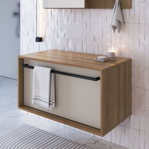 A renovação do seu banheiro a seu alcance, ou melhor seu banheiro mais elegante e charmoso com a nova coleção da Prodecor! Esse lindo gabinete com puxador/toalheiro em aço com pintura epóxi e uma uma gaveta para acomodar todos os seus pertences e com cores modernas traz todo o requinte que o seu banheiro precisa. Um diferencial maior é que suas toalhas são acomodadas bem a sua frente sem precisar furar parades. Componha agora mesmo o seu banheiro com a coleção da Prodecor! Não companha cuba. Acabamento da Gaveta: Finish Foil Acompanha Cuba: Não Acompanha Manual de Instalação: Sim Acompanha Parafusos Para Fixação Na Parede: Sim Ambiente Principal: Banheiro codigo_ean: 7909903962701 Complexidade da Montagem: Média: pode ser montado por mais de uma pessoa e/ou necessite de maior conhecimento para montagem Cor: Mel/Arenas Cor do Produto: Mel/Arenas Cor Flex: Não Cor Interna: Mel/Arenas Escala de Brilho: Fosco Escala de Brilho da Gaveta: Fosco Furação para Cuba e Torneira: Não Gaveta com Chave: Não Itens Inclusos: 1 Gabinete e Manual de Montagem Linha ou Coleção: Banheiro Manual de Montagem e Instalação: https://product-hub-prd.madeiramadeira.com.br/957795/documents/a7ad8735-2a9e-4506-a516-c608285b30b92433792522517284119829119.pdf Material da Gaveta: MDP Material do Puxador da Gaveta: Aço Material do Tampo: MDP Material do Toalheiro: Aço Material Principal: MDP Necessita Montagem: Sim Origem do Produto: Nacional Peso: 16,8 kg Peso Máximo por Gaveta: 10 kg Possui Nichos: Não Possui Pés: Suspenso Possui Portas: Não Possui Prateleiras: Não Possui Recorte No Tampo Para Cuba: Não Possui Recorte No Tampo Para Misturador: Não Possui Sifão: Não Possui Tampo: Sim Produto Montado: Não Quantidade de Gavetas: 01 Recomendações de Uso, Manutenção e Limpeza: Para a limpeza do móvel utilizar pano levemente umedecido Resistente à Chuva: Não Sapatas Niveladoras: Não Sistema de Montagem: Parafusos, cavilhas e minifix Suporta Até (kg): 25 kg Tamanho Indicado Para Cuba: 34x32 Tipo de Corrediça da Gaveta: Metálica Telescópica Tipo de Móvel para o Banheiro: Gabinete de Banheiro Tipo de Puxador da Gaveta: Externo Marca: Prodecor