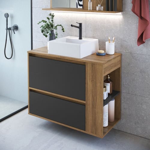 O gabinete para banheiro BL2003 da Faema possui design inovador e funcional, tornando seu banheiro ainda mais lindo! Ele possui nicho lateral que irá acomodar perfeitamente utensílios essenciais para o seu banheiro e ainda você pode escolher de que lado do gabinete você quer usá-lo! Produto acompanha cuba em mármore sintético, uma porta basculante e uma gaveta. Acabamento da Cuba: Liso Acabamento da Gaveta: Finish Foil Acabamento da Porta: Finish Foil Acabamento da Prateleira: Finish Foil Acompanha Cuba: Sim Acompanha Manual de Instalação: Sim Acompanha Parafusos Para Fixação Na Parede: Sim Ambiente Principal: Banheiro codigo_ean: 7909903893807 Complexidade da Montagem: Baixa: pode ser montado por uma pessoa sozinha Comprimento da Prateleira: 35 cm Cor: Mel/Grafite Cor da Cuba: Branco Cor do Produto: Mel/Grafite Cor Flex: Não Cor Interna: Mel/Grafite Escala de Brilho: Fosco Escala de Brilho da Gaveta: Fosco Escala de Brilho da Porta: Fosco Escala de Brilho da Prateleira: Fosco Espessura da Prateleira: 1,5 cm Furação para Cuba e Torneira: Não Gaveta com Chave: Não Itens Inclusos: 1 gabinete com cuba sobrepor e manual de montagem Linha ou Coleção: Banheiro Manual de Montagem e Instalação: https://product-hub-prd.madeiramadeira.com.br/936144/documents/8e321e58-4f94-48a3-bef8-d4c95de8a3802268061522517248046825833.pdf Material da Cuba: Mármore Sintético Material da Gaveta: MDP Material da Porta: MDP Material da Prateleira: MDP Material do Tampo: MDP Material Principal: MDP Medida da Cuba (C x L x P): 9x32x30 Montagem Flex: Sim, nicho lado direito ou esquerdo. Necessita Montagem: Sim Origem do Produto: Nacional Peso: 24,8 kg Peso Máximo por Gaveta: 5 kg Peso Máximo por Prateleira: 2 kg Possui Nichos: 02 Possui Pés: Suspenso Possui Recorte No Tampo Para Cuba: Não Possui Recorte No Tampo Para Misturador: Não Possui Sifão: Não Possui Tampo: Sim Produto Montado: Sim Quantidade de Gavetas: 01 Recomendações de Uso, Manutenção e Limpeza: Para a limpeza do móvel utilizar pano levemente umedecido com água Resistente à Chuva: Não Sapatas Niveladoras: Não Sistema de Montagem: Parafusos, cavilhas e minifix Suporta Até (kg): 25 kg Tipo de Corrediça da Gaveta: Metálica Simples Tipo de Dobradiça/Corrediça da Porta: Metálica Tipo de Móvel para o Banheiro: Gabinete de Banheiro Tipo de Porta: Basculante Tipo de Puxador da Gaveta: Embutido Tipo de Puxador da Porta: Embutido Válvula indicada: Válvula padrão