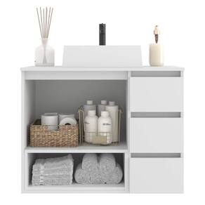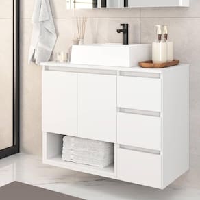 O gabinete de banheiro suspenso BL9280 é produzido em MDP 15mm e acabamento em FF fosco. A estrutura do fundo é em MDF 3mm. Possui 2 portas de bater com dobradiça metálica, 3 gavetas com corrediças metálicas e que suportam 5kg cada e 1 nicho. Necessita fixação na parede e acompanha parafusos para esta fixação. Produto suporta até 40kg. Conteúdo da embalagem: móvel, ferragens e manual de montagem. A fixação das peças e/ou acessórios é feita por parafusos, cavilhas e minifix. Para a limpeza do móvel utilizar pano levemente umedecido. Garantia de 03 meses contra defeitos de fabricação. Medidas do produto (AxLxP): 62x80x40cm. Peso do produto: 27kg. Acompanha cuba branca de sobrepor. Marca: Não Informado