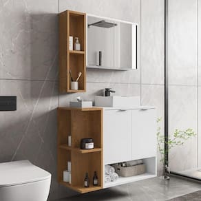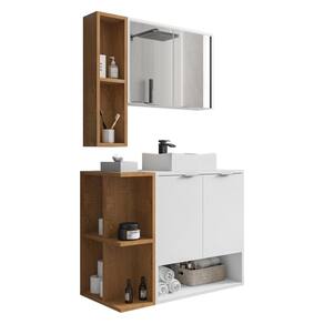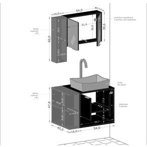 Dimensões do produto montado: Balcão - Altura: 47,8cm (sem cuba) - 80cm (com cuba) | Largura: 70cm | Profundidade: 45cm Espelheira - Altura: 60cm (Nicho) - 39,6cm (Armário) | Largura: 70cm | Profundidade: 13cm *Você pode consultar as medidas detalhadas na imagem técnica do produto.