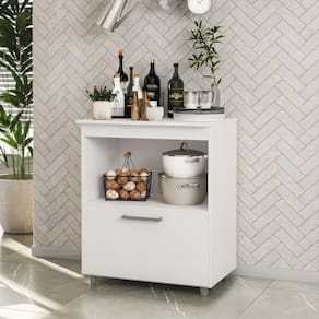 Que tal o Gabinete de Cozinha Begônia?A cozinha é um ambiente que precisa estar sempre organizado para facilitar o momento de preparar refeições, mas também para manter a estética do cômodo equilibrada. O Gabinete Begônia é um complemento e tanto para as outras peças que podem já fazer parte do seu espaço, ou para aquelas que você está adquirindo junto com ele, já que traz compartimentos extra para utensílios, alimentos secos, pequenos eletrodomésticos e o que mais você precisar guardar, além, é claro, do espaço para o microondas. De quebra, a cor em destaque é leve, o que faz dele um ótimo aliado na hora de harmonizar com outros móveis e acessórios para criar um cantinho perfeito. Marca: Modern
