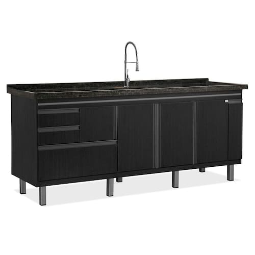 Gabinete de cozinha Fortaleza para pia de 1,94 m - Preto