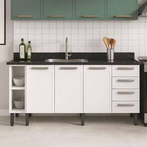 Gabinete de Cozinha Mais Evidence 3 Portas 4 Gavetas 100% Aço 180CM Branco