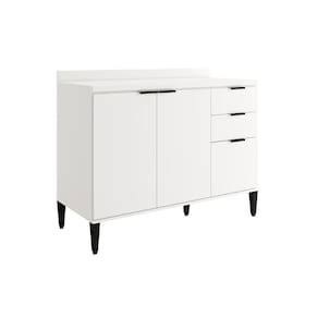 Tipo de Dobradiças - Dobradiças Metálicas Tipo de puxador - Alumínio Escovado Quantidade de Portas - 3 Portas de Abrir Tipo de Gaveta - Gaveta Externa Quantidade de Gavetas - 2 Gavetas Tipo de Corrediça - Telescópicas Material das Prateleiras - Prateleira Madeirada Quantidade de Prateleiras - 1