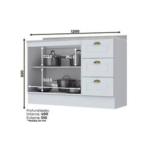 Abaixo segue os produtos do KIT: Balcão de Cozinha p/ Pia c/ Tampo Americana c/ 2 Portas e 3 Gavetas 120cm Branco - Henn