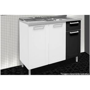 Gabinete de Cozinha Modulado Balcão c/ Pia Múltipla c/ 3 Portas e 1 Gaveta Branco/Preto - Bertolini - Blush