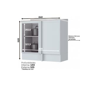 Balcão de Cozinha Canto Reto Americana 1 Porta s/ Tampo 84cm Branco - Henn