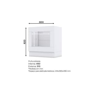 Dimensões(Cm): Comnto(Profundidade): 80cm x Largura: 51cm x Altura: 82cm Material de Estrutura - 100% MDF Tipo de Móvel - Apropriado p/ Uso de Pia - Gabinete Cooktop Tipo de Pintura - Pintura em UV (Ultravioleta) Tipo de Acabamento da Pintura - Semi Brilho Quantidade de nichos - 1 nicho Diferenciais dos Nichos - Nicho p/ Forno Montagem do Produto - Desmontável Certificação de Qualidade - Certificação de Qualidade Aprovada Garantia - 3 meses