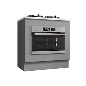 Gabinete De Cozinha Modulado Balcão C/ Tampo Americana P/ Forno De Embutir E Cooktop 80cm Cinza - Henn