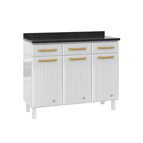 Gabinete De Cozinha Modulado Balcão Diamante 3 Portas E 3 Gavetas C/ Tampo 105cm Branco - Telasul