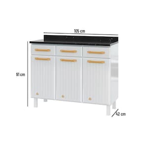 Balcão de Cozinha Diamante 3 Portas e 3 Gavetas c/ Tampo 105cm Branco - Telasul