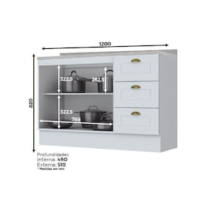 Abaixo segue os produtos do KIT: Balcão de Cozinha p/ Pia c/ Tampo Americana c/ 2 Portas e 3 Gavetas 120cm Branco - Henn